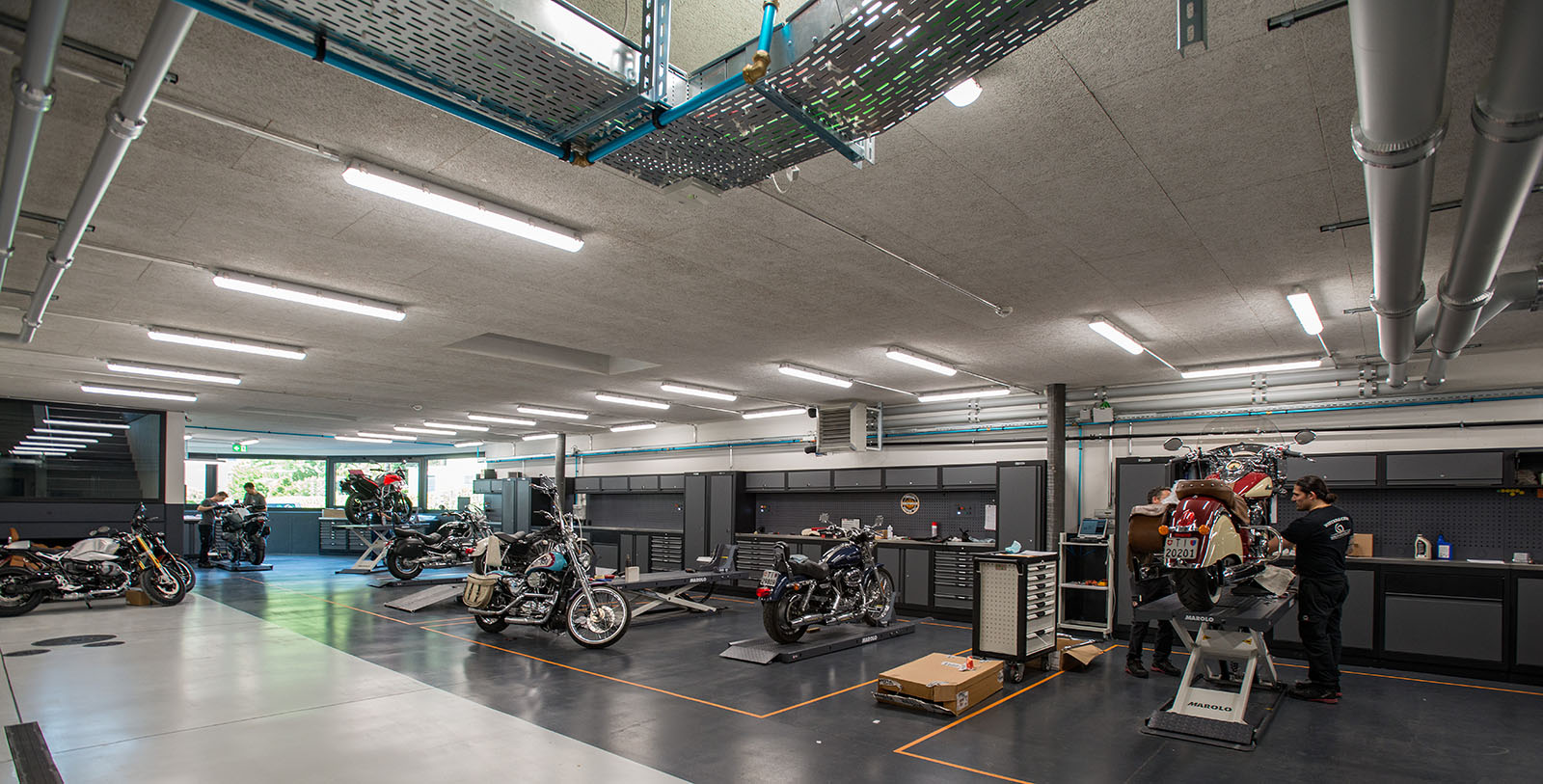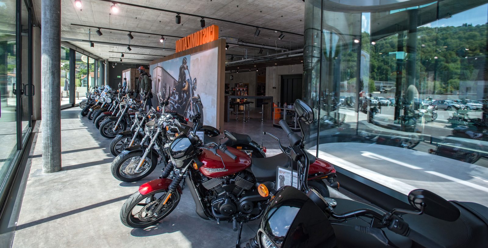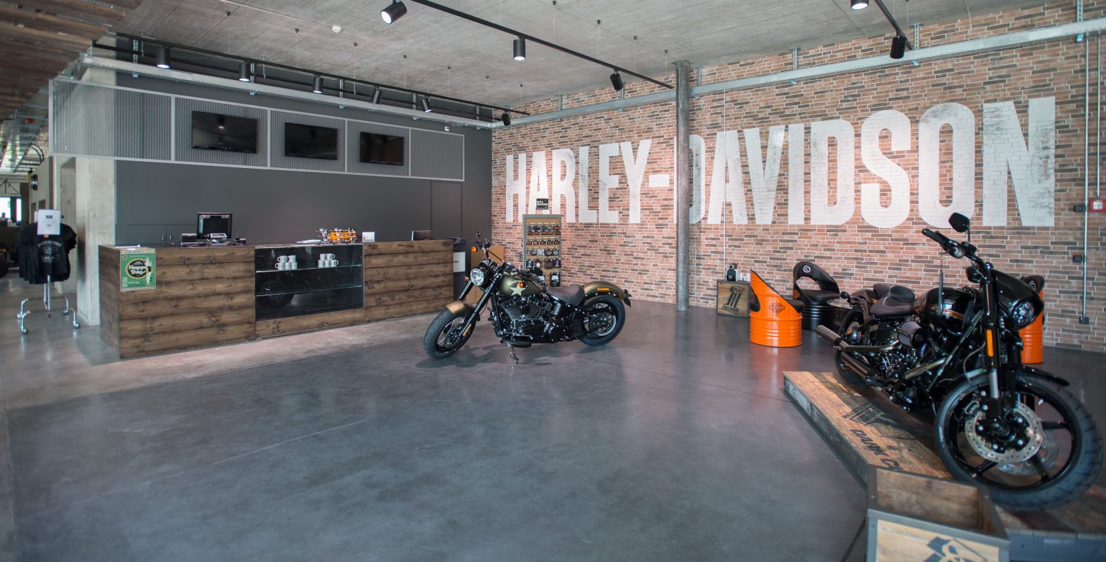 A cult brand, inspired by the world’s many roads. Similarly the exhibition and sales area recalls the places and their story, in particular the American one. Bricks, wood and colour punctuate the exposition spaces, while impressive graphics become vivid communication elements.
