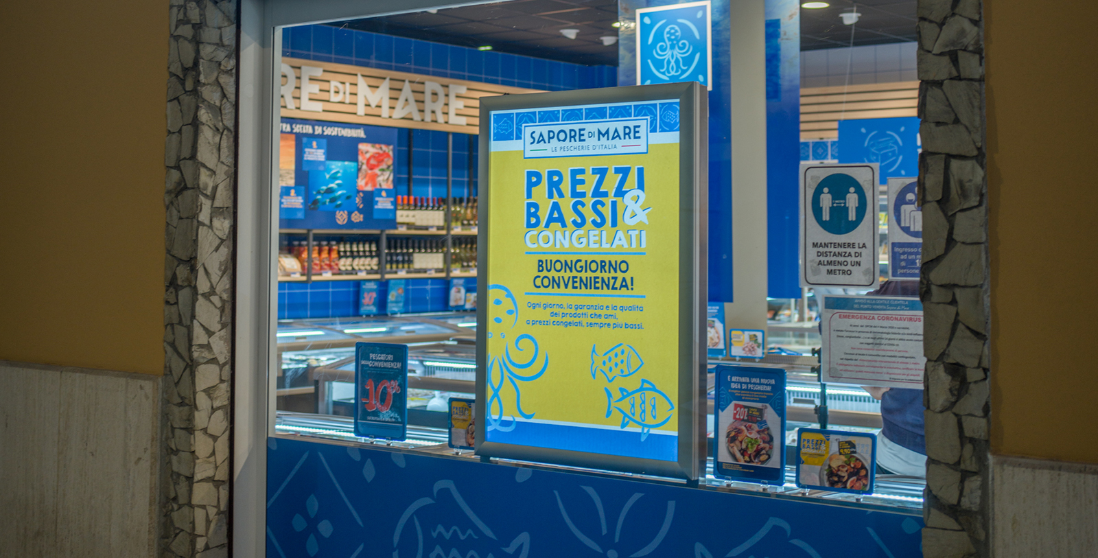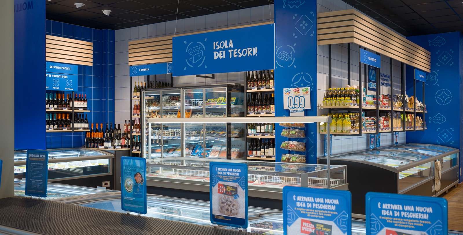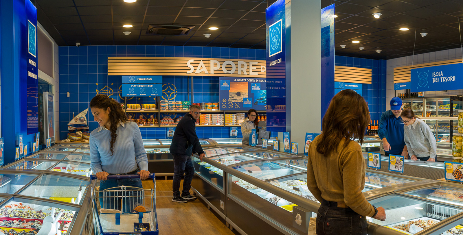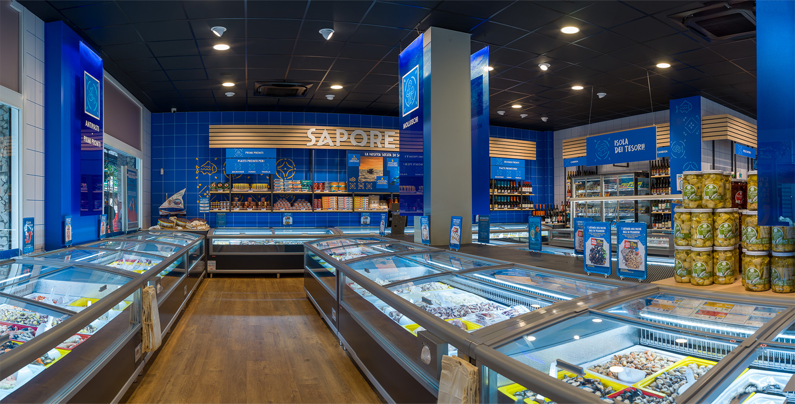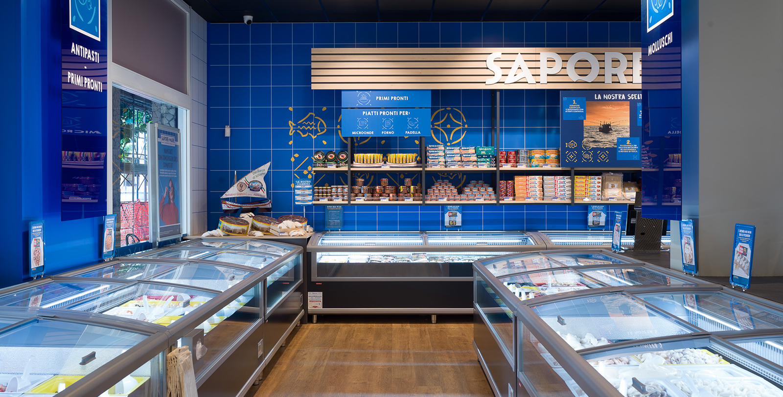 La catena di pescherie Sapore di Mare, specializzata in prodotti ittici surgelati e piatti pronti a base di pesce, rivede il suo format proponendo un concept store rinnovato a Chiavari (165 mq), progettato da Fase Modus, in collaborazione con RBA Design, suo partner storico. Questa operazione rientra in un percorso di più ampio di rinnovamento portato avanti dall'insegna, presente sul territorio con oltre 100 negozi. L'iter di rebranding, infatti, è stato completo: dalla visual identity alla comunicazione al cliente con l'obiettivo di dare alla marca nuova visibilità e valorizzarne il posizionamento sul mercato. Questo punto di vendita segna quindi l'avvio di un percorso che coinvolgerà da oggi in poi gli store della rete.